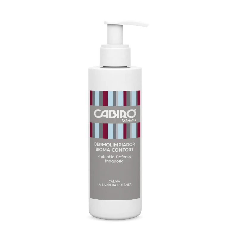 Cabiró Dermolimpiador Bioma Confort es un limpiador no espumante de textura fluida, para eliminar los residuos de maquillaje y las impurezas de la cara y los ojos. Sin perfume. Ideal para la piel sensible y enrojecida. Dos modos de uso: con y sin aclarado.