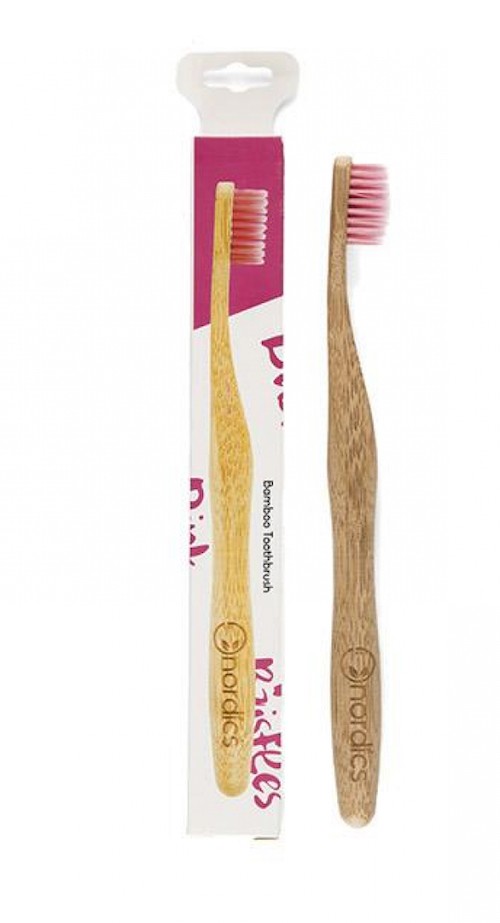 Cepillo dental de Bambú para adultos, Rosa. Nordics Oral Care
