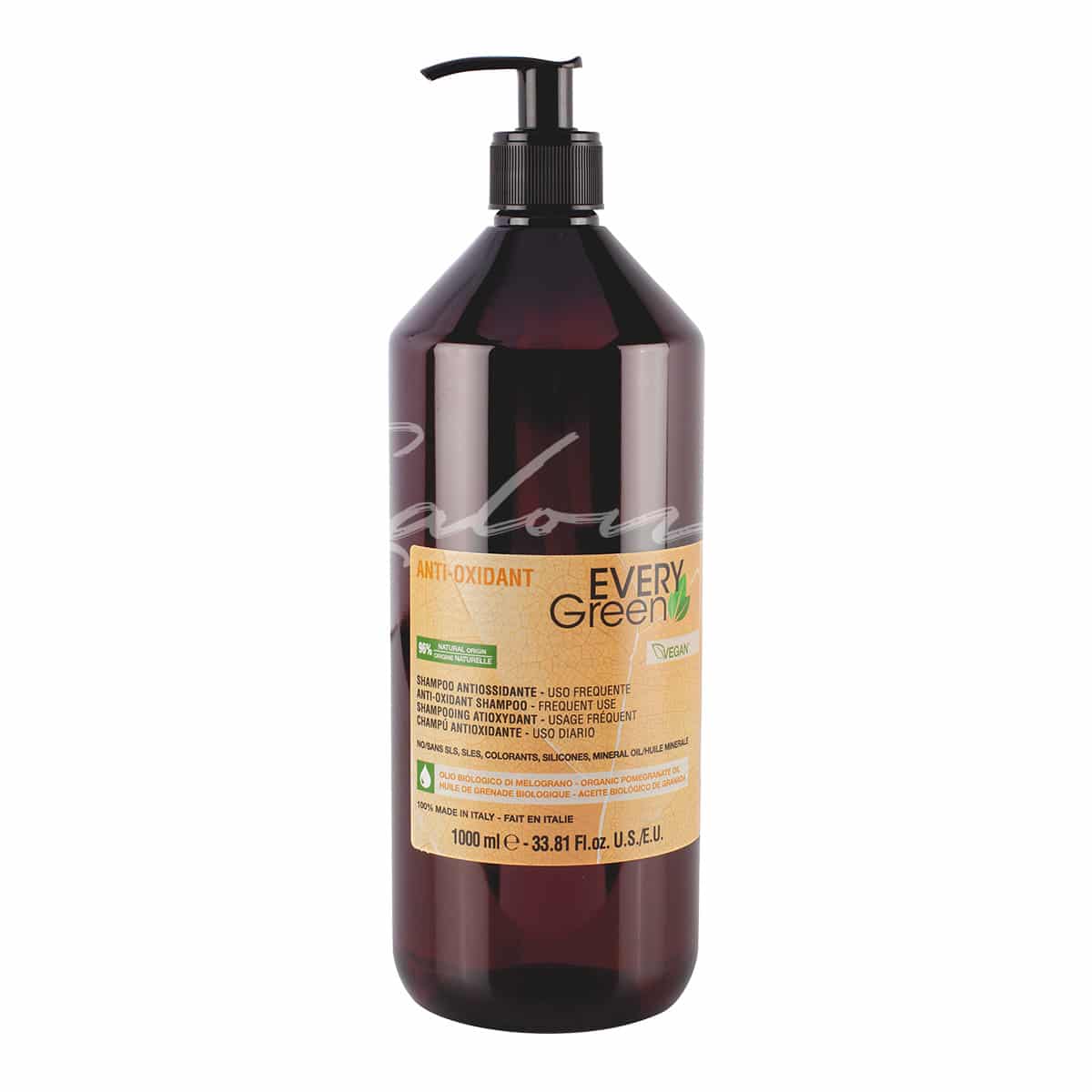 [/vc_column_text][vc_column_text]El Champú Antioxidante Every Green está especialmente formulado para proteger el cabello de las agresiones externas y devolverle su luminosidad natural. Su fórmula suave y sin sulfatos lo convierte en una opción ideal para el uso frecuente y para todo tipo de cabello.