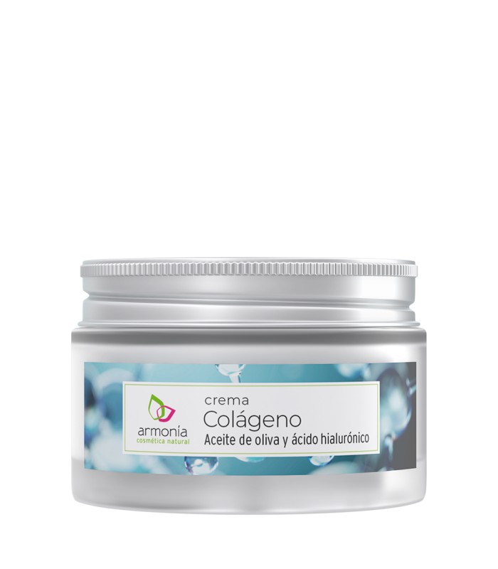La crema colágeno Armonía (50 ml) hidrata y ayuda a mantener la elasticidad de la piel gracias a su combinación de colágeno, ácido hialurónico, aceite de oliva y karité. Textura confortable para uso diario en rostro, cuello y escote.