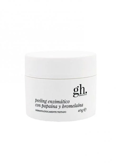 Cáscara enzimática en polvo, formulada con 2 enzimas derivadas de frutas (papaya y piña), que se activan al contacto con el agua.