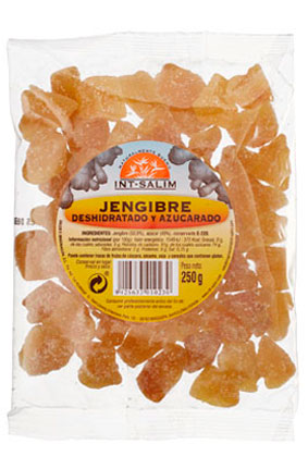 Jengibre deshidratado y azucarado.El jenjibre resulta un complemento ideal para utilizar como remedio para tratar enfermedades respiratorias, gripes y resfriados. De hecho alivia la fiebre, elimina la congestión y el dolor de garganta y ayuda a desinflamar la nariz congestionada por sinusitis.