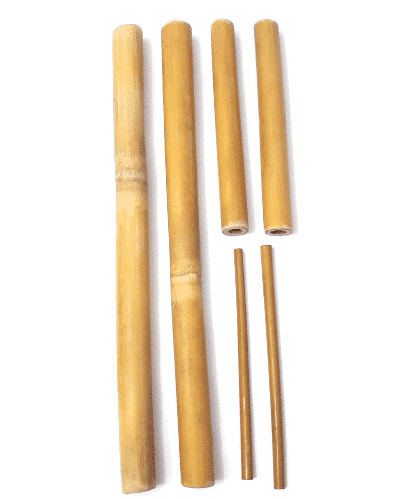 2 caña de bambú masaje de 40cm longitud 3/4cm de diámetro, 2 cañas de bambú masaje de 20cm longitud 3/4cm de diámetro, 2 cañas de bambú masaje de 20cm longitud 1/2cm de diámetro y 1 bolsa de tela para guardar y transportar el bambú