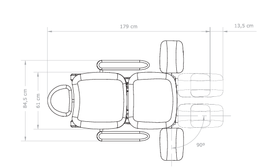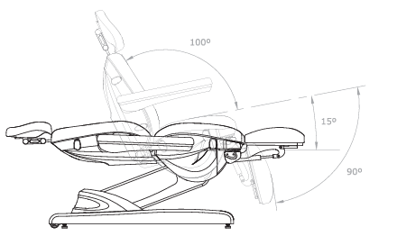 - Inclinación del reposapiés (75º arriba y abajo por pistón de gas / 90º derecha‑izquierda) y extensible hasta 13,5 cm.