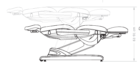 - Regulación eléctrica de altura (en posición plana) 61‑91 cm.