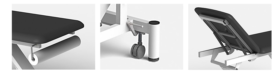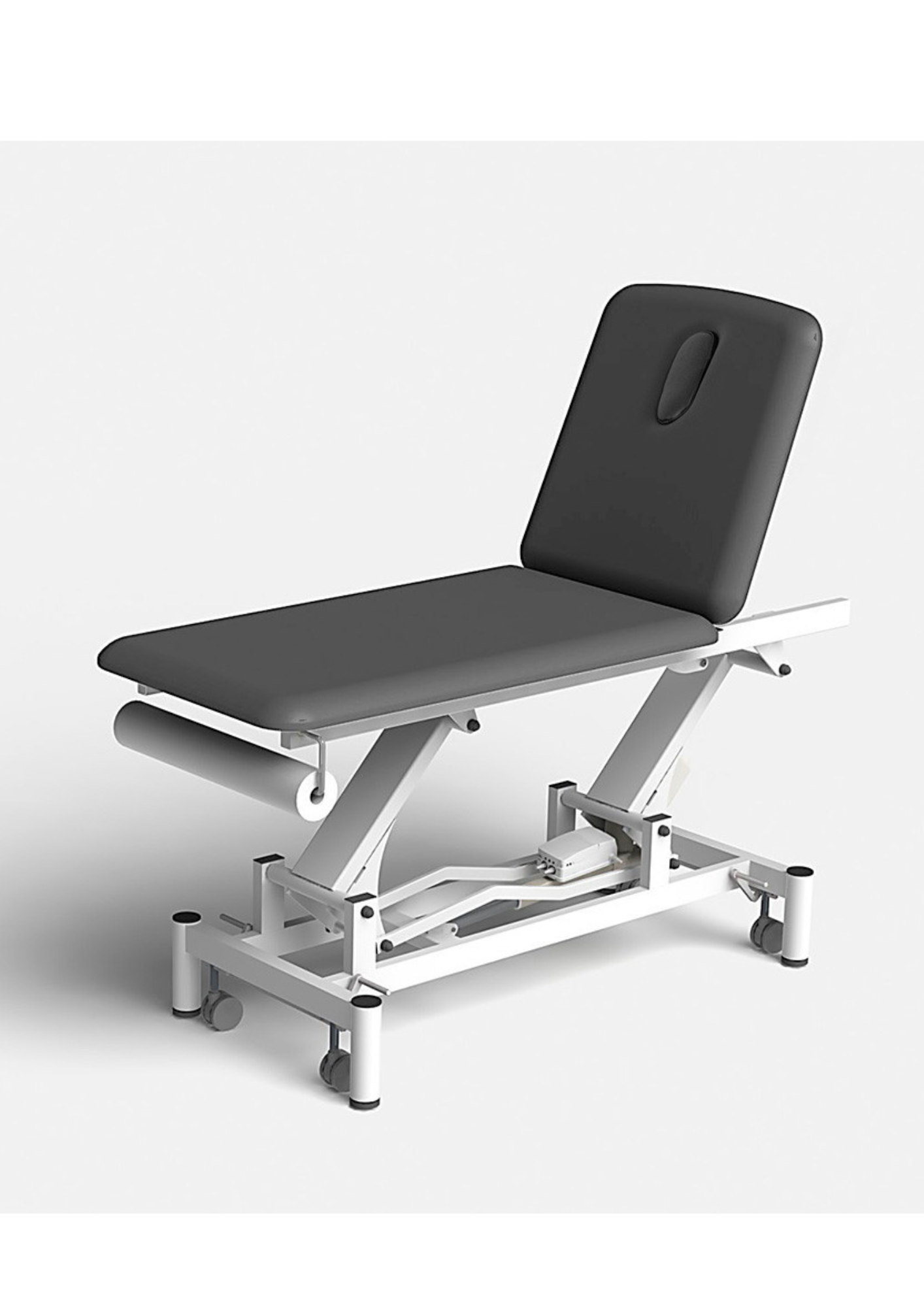 PRO 201: Camilla eléctrica dos cuerpos + portarrollos + mando de control. Con certificación de producto sanitario de dos secciones para tratamientos de fisioterapia