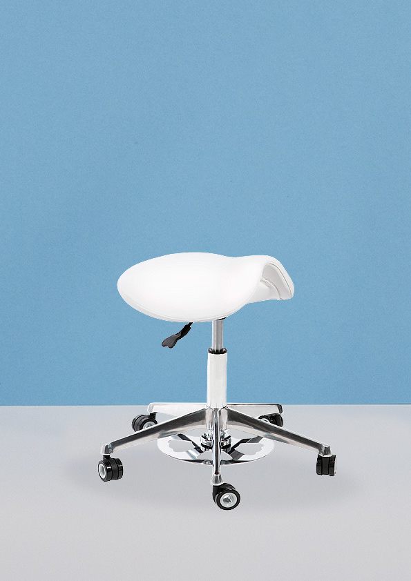Vena Adapt es un taburete de trabajo ergonómico fabricado por Sonia Beauty Concept, marca especializada en mobiliario clínico y estético. Su asiento en forma de silla de montar facilita una buena postura y contribuye a evitar dolores de espalda.
