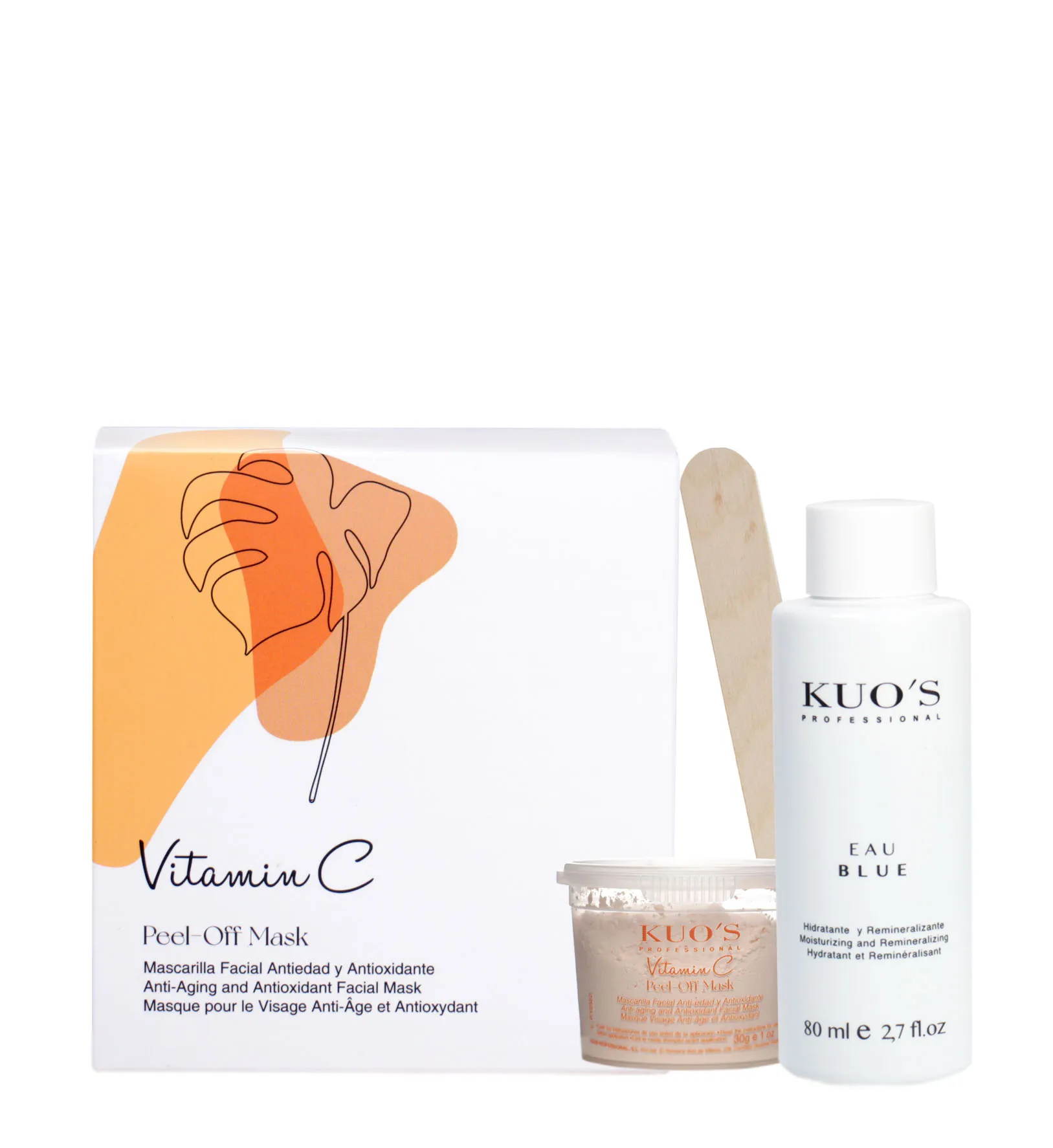 MODO DE EMPLEO: Añadir PEEL-OFF MASK en un recipiente. Agregar todo el contenido de EAU BLUE KUO’S. Mezclar energéticamente con ayuda de la espátula hasta conseguir una mezcla homogénea. Importante: Usar inmediatamente. Aplicar una capa de unos 2 mm de grosor sobre el rostro, cuello y escote con ayuda de la espátula. Dejar actuar sobre 15-20 minutos, hasta que se forme una capa compacta. Retirar la mascarilla de una sola pieza, comenzando por el cuello. No aclarar con agua.